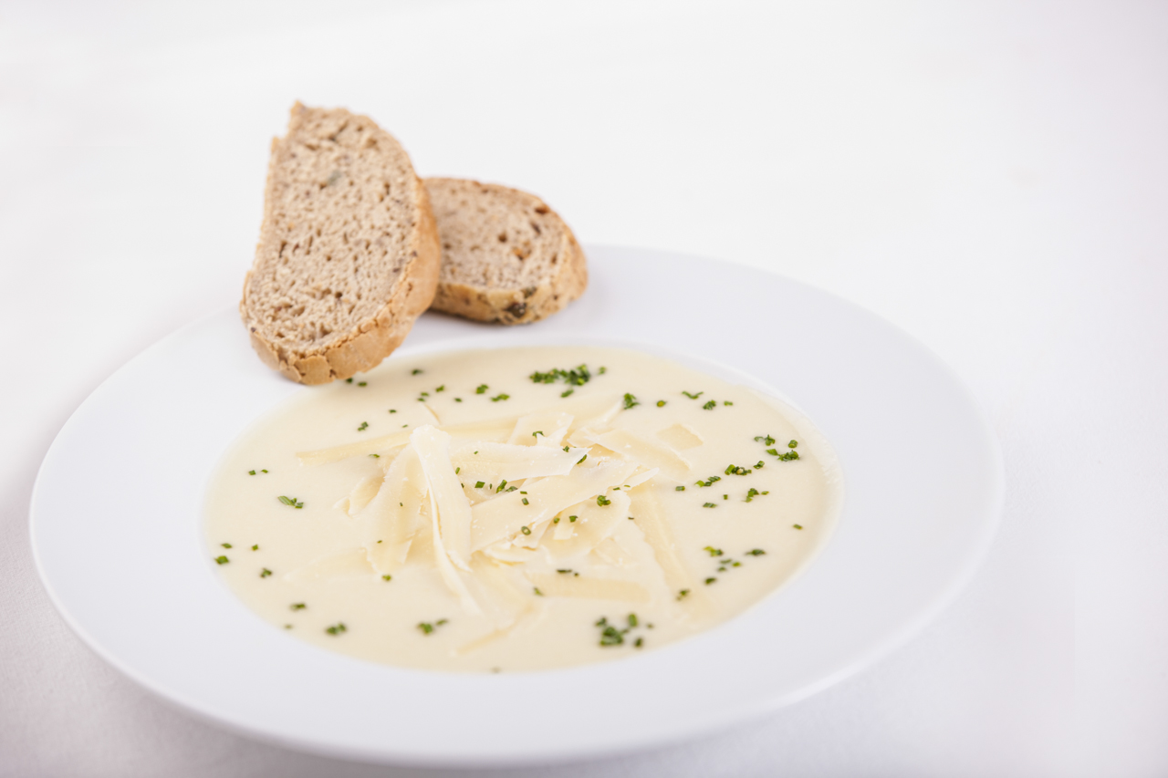 Trochu jiná “bramboračka”. Bez zeleniny a se sýrem Gran Moravia. Recept pro 4 osoby.