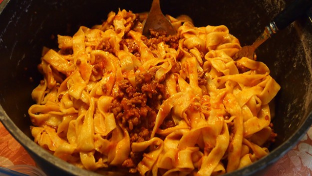 V Itálii se proslavilo boloňské ragú, což je rajčatová omáčka s masem a základem tvořeným z mrkve, řapíkatého celeru a cibule. Typicky se podává s těstovinami tagliatelle (které jsou typické pro region Emilia na rozdíl od špaget) nebo může sloužit velmi dobře k lasagním a polentě. Recept pro 4 osoby.
