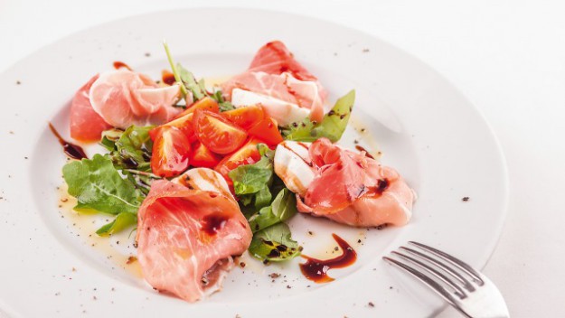 Parmská šunka s čerstvou mozzarellou a rajčátky