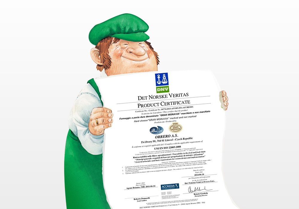Lo scorso 14 giugno 2011 l’ente internazionale “DNV – Det Norske Veritas” ha completato felicemente l’iter di certificazione previsto dalle norme ISO, riconoscendo a Gran Moravia e alla sua filiera caratteristiche di responsabilità ed ecosostenibilità da tempo obiettivo distintivo del gruppo Brazzale nella gestione delle proprie filiere.